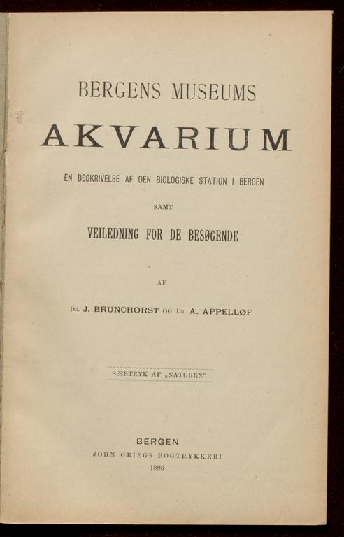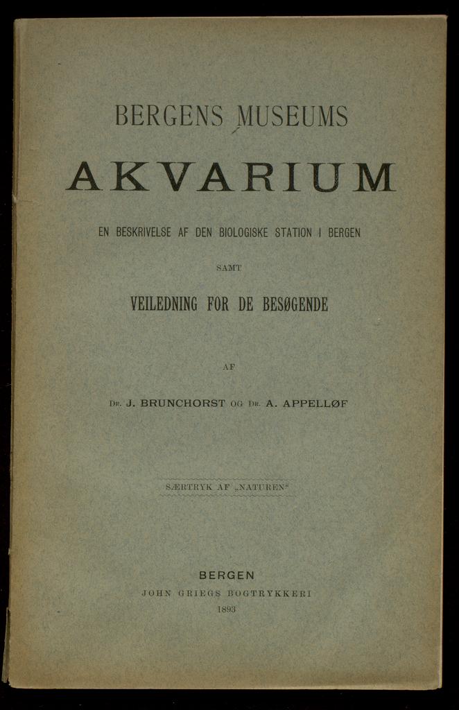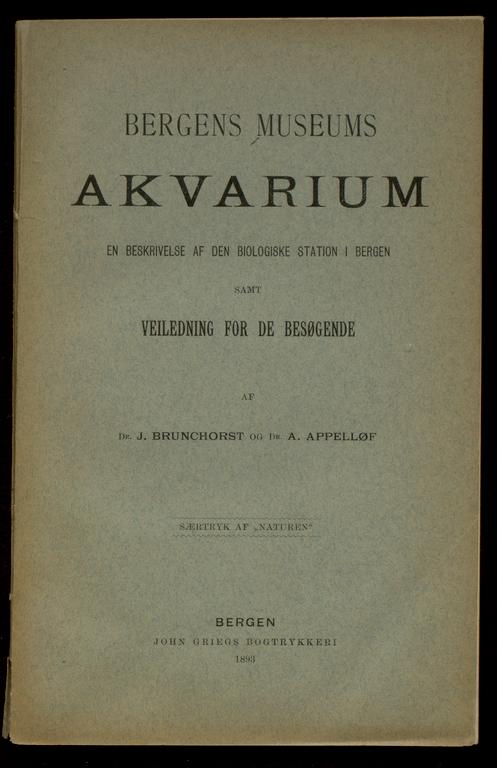 {{cite web |url=https://marcus.uib.no/instance/book/ubb-bgm-sam-02 |title=Bergens museums akvarium : en beskrivelse af den biologiske station i Bergen samt veiledning for de besøgende af J. Brunchorst og A. Appelløf |author=Avdeling for spesialsamlinger |accessdate=Fri Feb 13, 2026 |publisher=University of Bergen Library}}