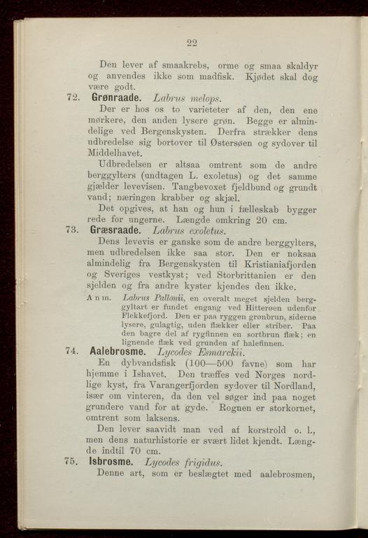 {{cite web |url=https://marcus.uib.no/instance/book/ubb-bgm-sam-03 |title=Norges fiske, deres udbredelse og levevis : fører gjennom Bergens museums norske fiskesamling af J. Brunchorst |author=Avdeling for spesialsamlinger |accessdate=Fri Feb 13, 2026 |publisher=University of Bergen Library}}