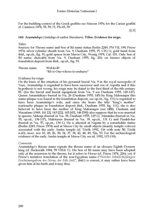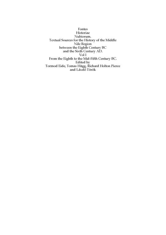 Fontes historiae Nubiorum : textual sources for the history of the Middle Nile Region between the eighth century BC and the sixth century AD : Vol. 1 : From the eighth to the mid-fifth century BC - data