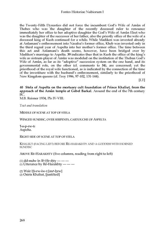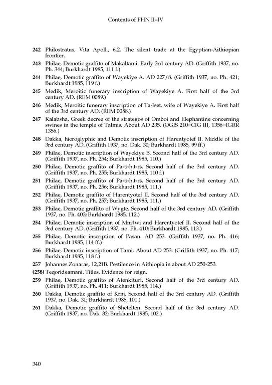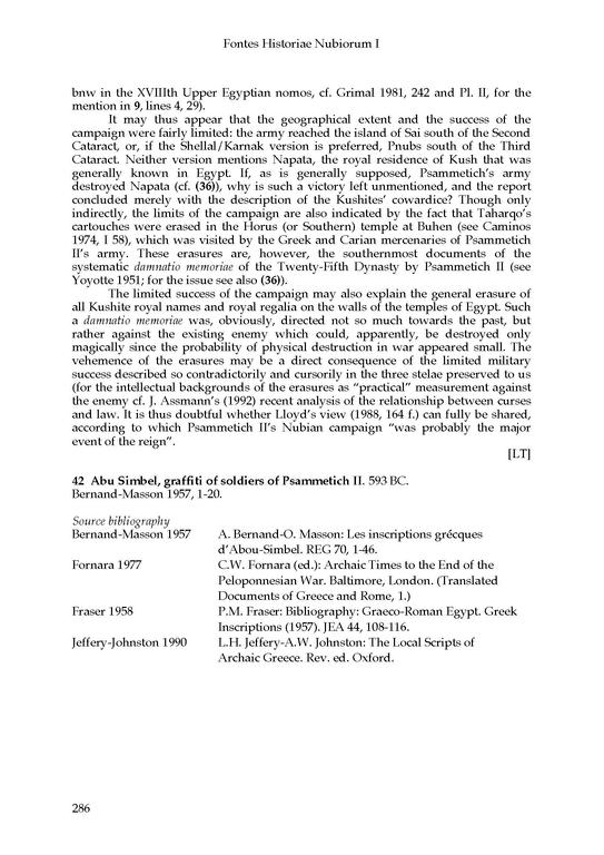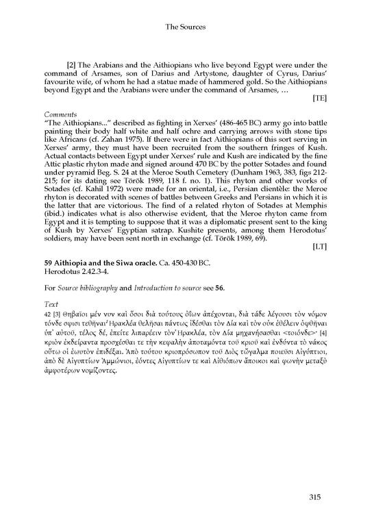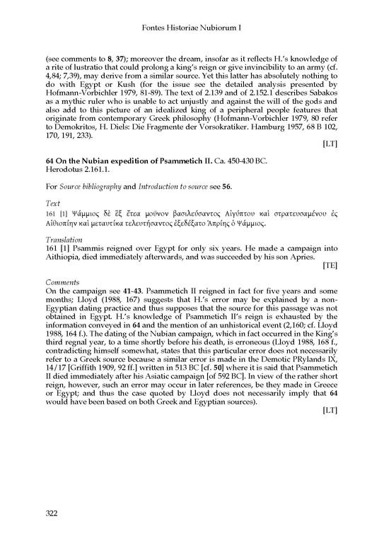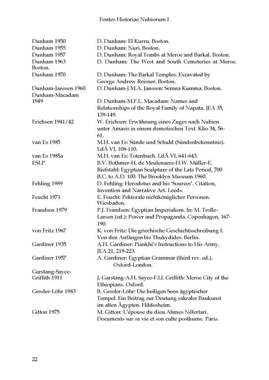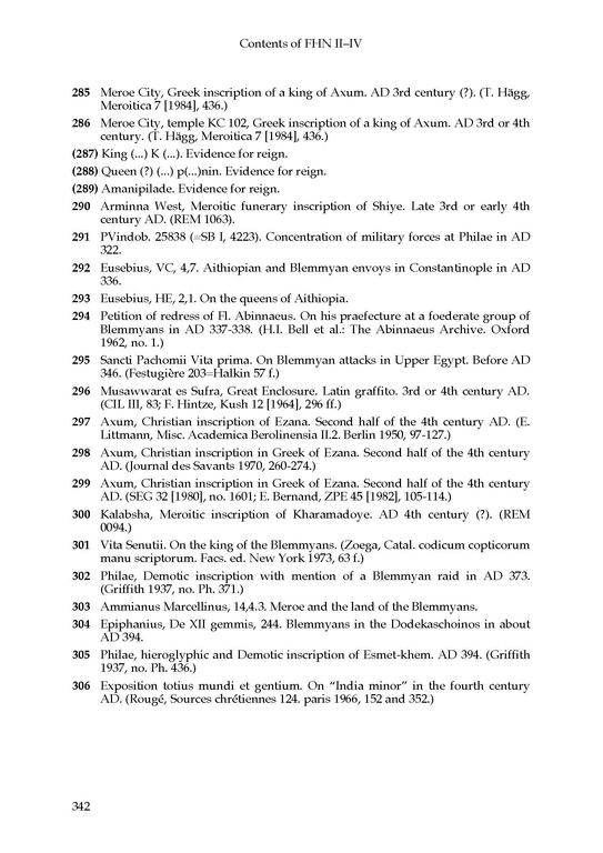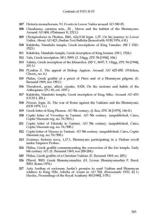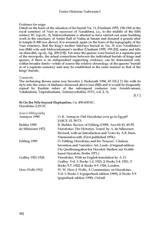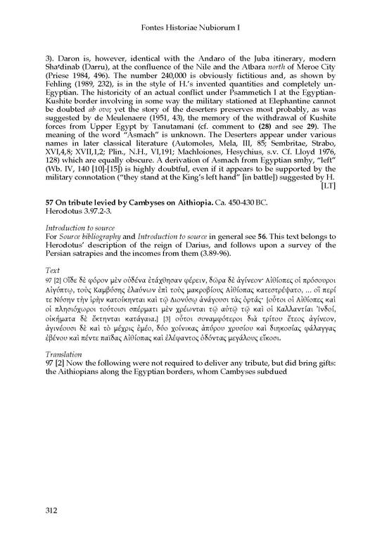 {{cite web |url=https://marcus.uib.no/instance/book/ubb-msref-0939-078-fon-01 |title=Fontes historiae Nubiorum : textual sources for the history of the Middle Nile Region between the eighth century BC and the sixth century AD : Vol. 1 : From the eighth to the mid-fifth century BC |author=Avdeling for spesialsamlinger |accessdate=Fri Nov 07, 2025 |publisher=University of Bergen Library}}