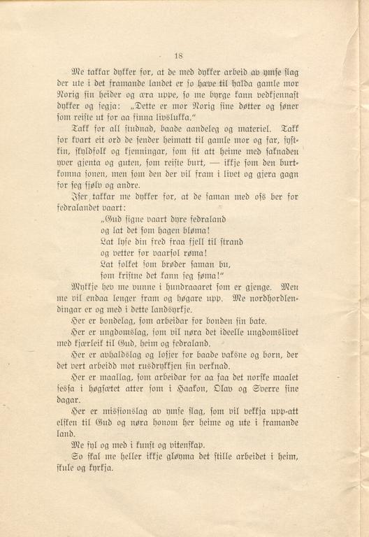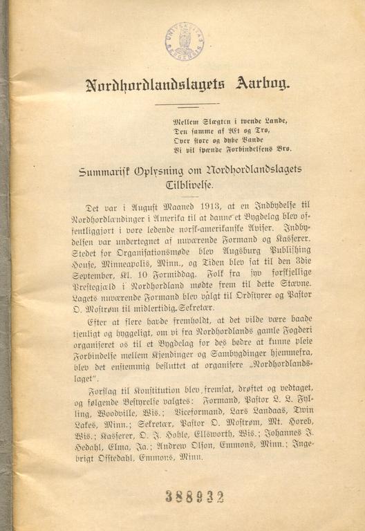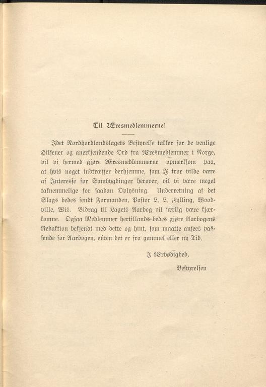 Dette dokumentet er knyttet til emnene Utvandring, Pionerliv, Emigranthistorie, Norsk-amerikanere, Foreninger