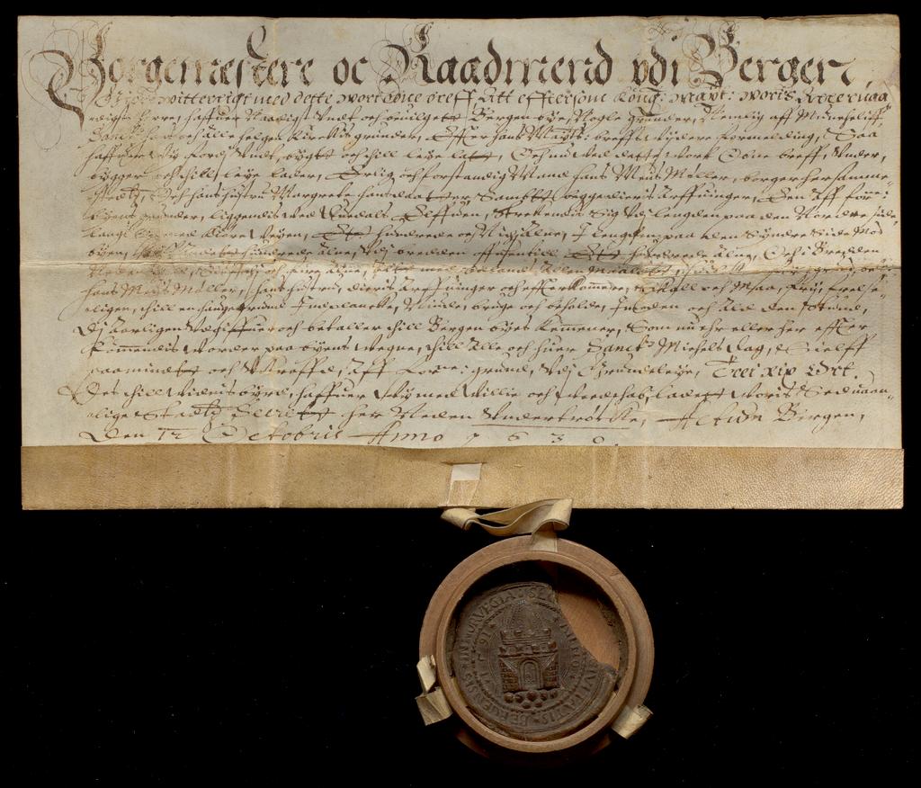 {{cite web |url=https://marcus.uib.no/instance/charter/ubb-1630-10-12 |title=1630, 12. oktober Bergen grunnbrev |author=Avdeling for spesialsamlinger |accessdate=Tue Feb 10, 2026 |publisher=University of Bergen Library}}