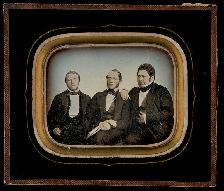 Gruppeportrett, Group portrait, Mannsportrett, Studioportrett, Daguerreotypi, Daguerreotype, Glass, Glas