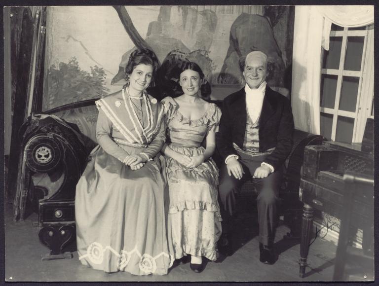 Forestillingsfoto fra oppsetning av Jan Herwitz med premiere 8. oktober 1975, ved Den Nationale Scene. Det fremgår av tekst på baksiden at dateringen er usikker: "Må være ...