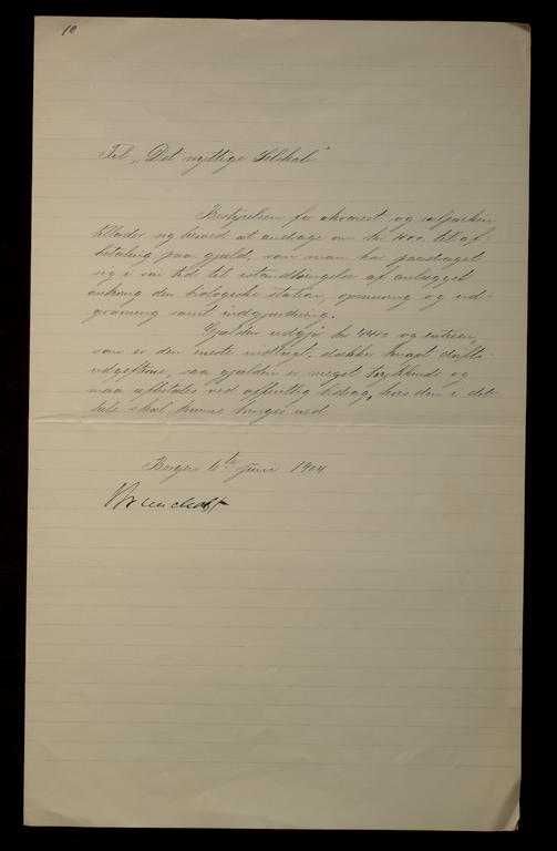 Dette dokumentet er knyttet til emnene Biologisk stasjon, Lokalhistorie, Det Nyttige Selskab, Bidrag, Brev, Søknad