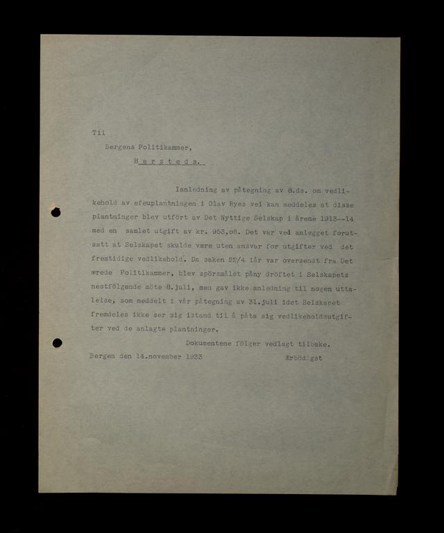 {{cite web |url=https://marcus.uib.no/instance/letter/ubb-ms-0509-21-06-40 |title=Det Nyttige Selskab, Innkomne brev m.m., 1933 |author=Avdeling for spesialsamlinger |accessdate=Mon Feb 09, 2026 |publisher=University of Bergen Library}}