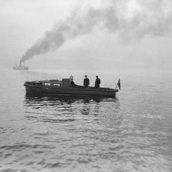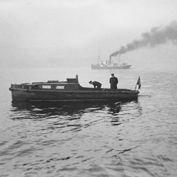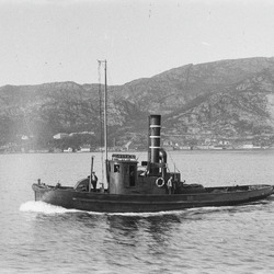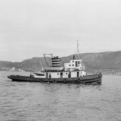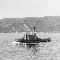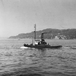 Slepebåten "Jarlen" ligger ved "Hohenzolleren II" i Puddefjorden.