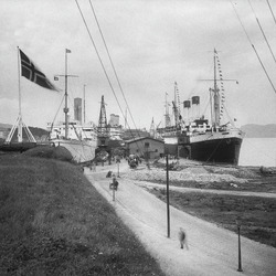 Fremst ligger "Monte Olivia" og "Orford" i bakgrunnen. Kan være fra 16.07.1928.