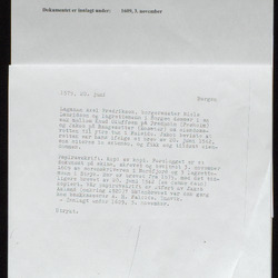 Garlich Tennering, kjøpmann i Brødregården på Bryggen, og Lyder Goldensthe?, kjøpmann i Solegården, selger og skjøter til skredder Hans Rissøn alle de hus og herligheter i Skredderstredet som de har kjøpt av Oluff Smedssøn. Samtidig ...