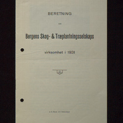 Beretning om Bergens Skog- og Træplantningsselskab virksomhet i 1931