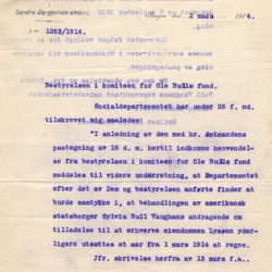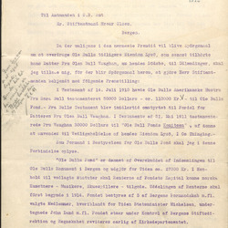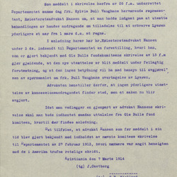 Dokumenter vedk. Processen mellem Ole Bull Fondets bestyrelse og visse personer i Amerika vedk. 30000 Dollar som var testamenteret av fru Bull til Norge