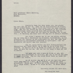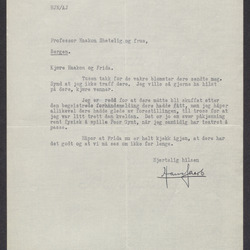 Maskinskrevet brev til Professor Haakon Shetelig og frue, fra Hans Jacob Nilsen.