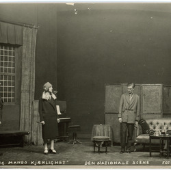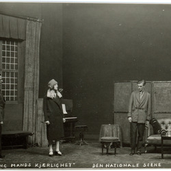 Eldre forestillingsfoto fra teaterproduksjon av "En ung mands kjærlighet" av Nordahl Grieg. Produksjonen hadde premiere 28. oktober 1927.