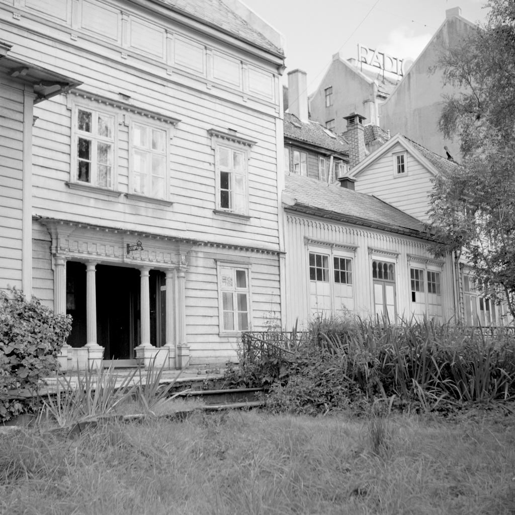 Dette bildet er knyttet til emnene Bolighus, Hage, Inngangsparti, Søyler, Trehusbebyggelse by