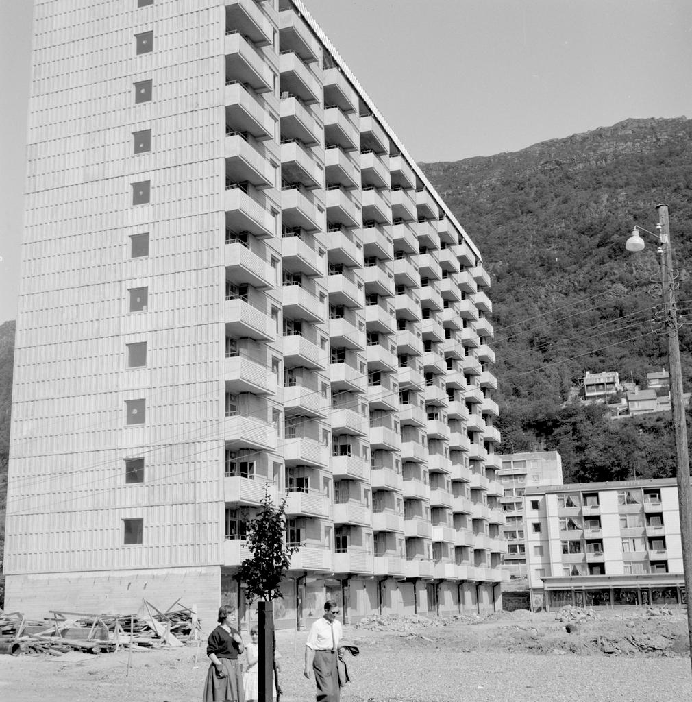 Dette bildet er knyttet til emnene Boligblokk, Byggeplass, Drabantby, Høyblokk