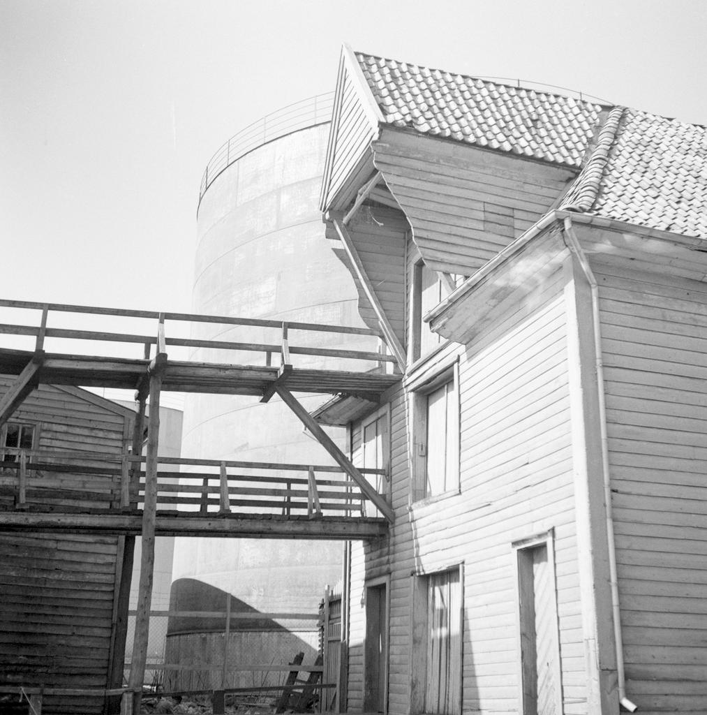 Dette bildet er knyttet til emnene Sjøbod, Tank, Trehusbebyggelse by