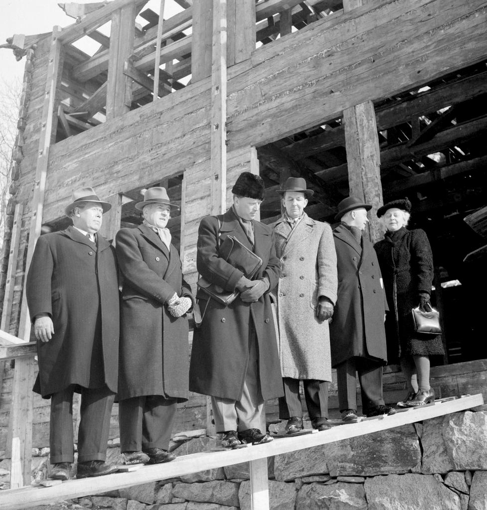 Bakerhuset på Gamle Bergen. Kranselag seinvinteren 1947 med tilhørende offisielt besøk.
