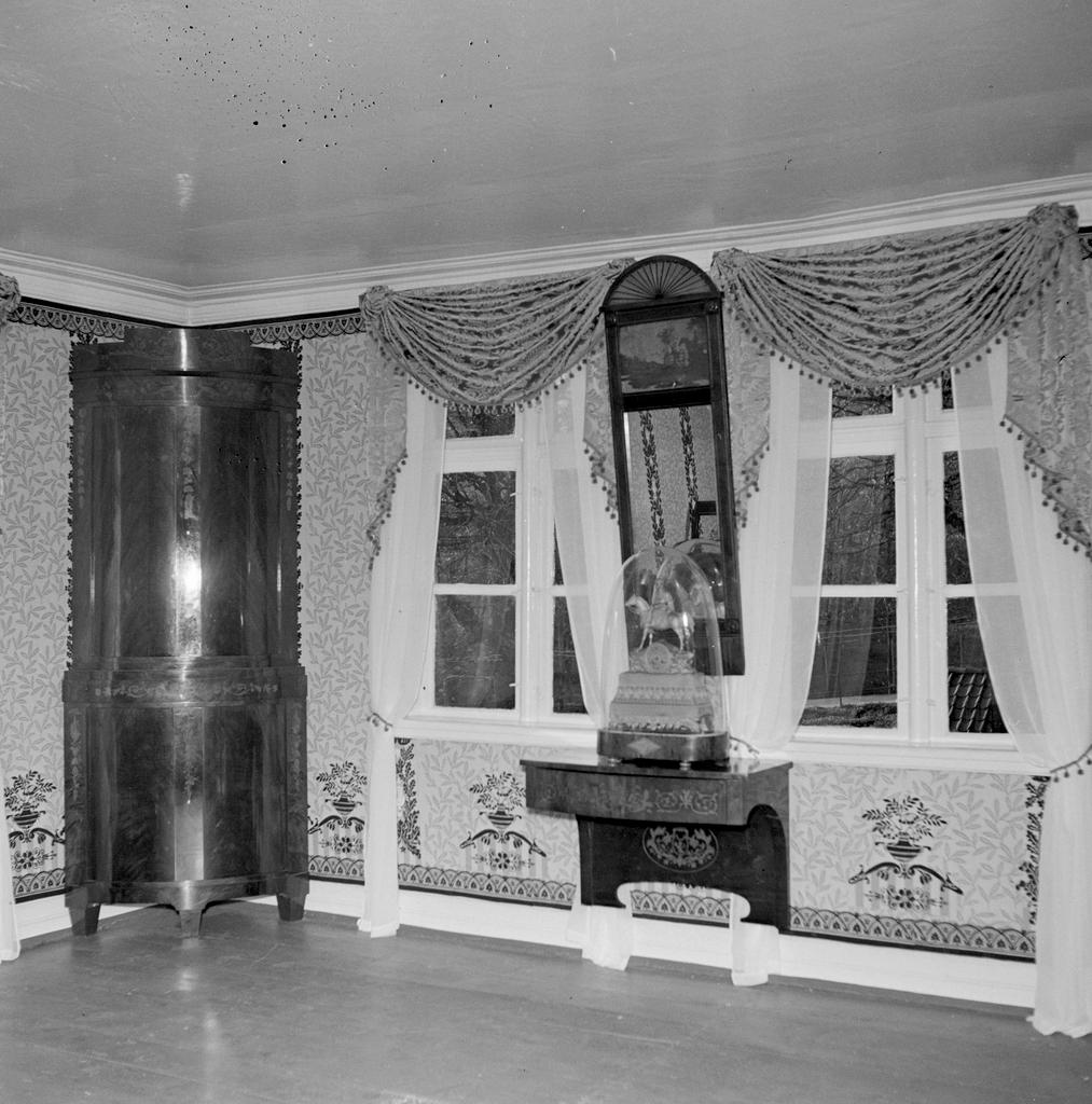 Dette bildet er knyttet til emnene Gardiner, Interiør, Museum, Skap, Speil, Tapet