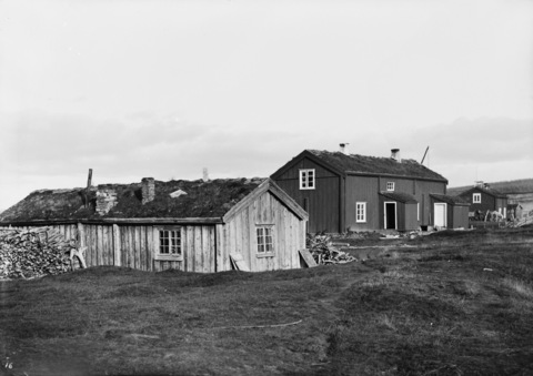 Dette bildet er knyttet til emnene Arkitektur og byggeskikk, Eksteriør, Høst, Kulturlandskap, Landsby, Prestegård, Skolebygning, Tinghus, Torvtak, UNESCO, Vedstabel