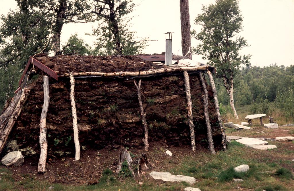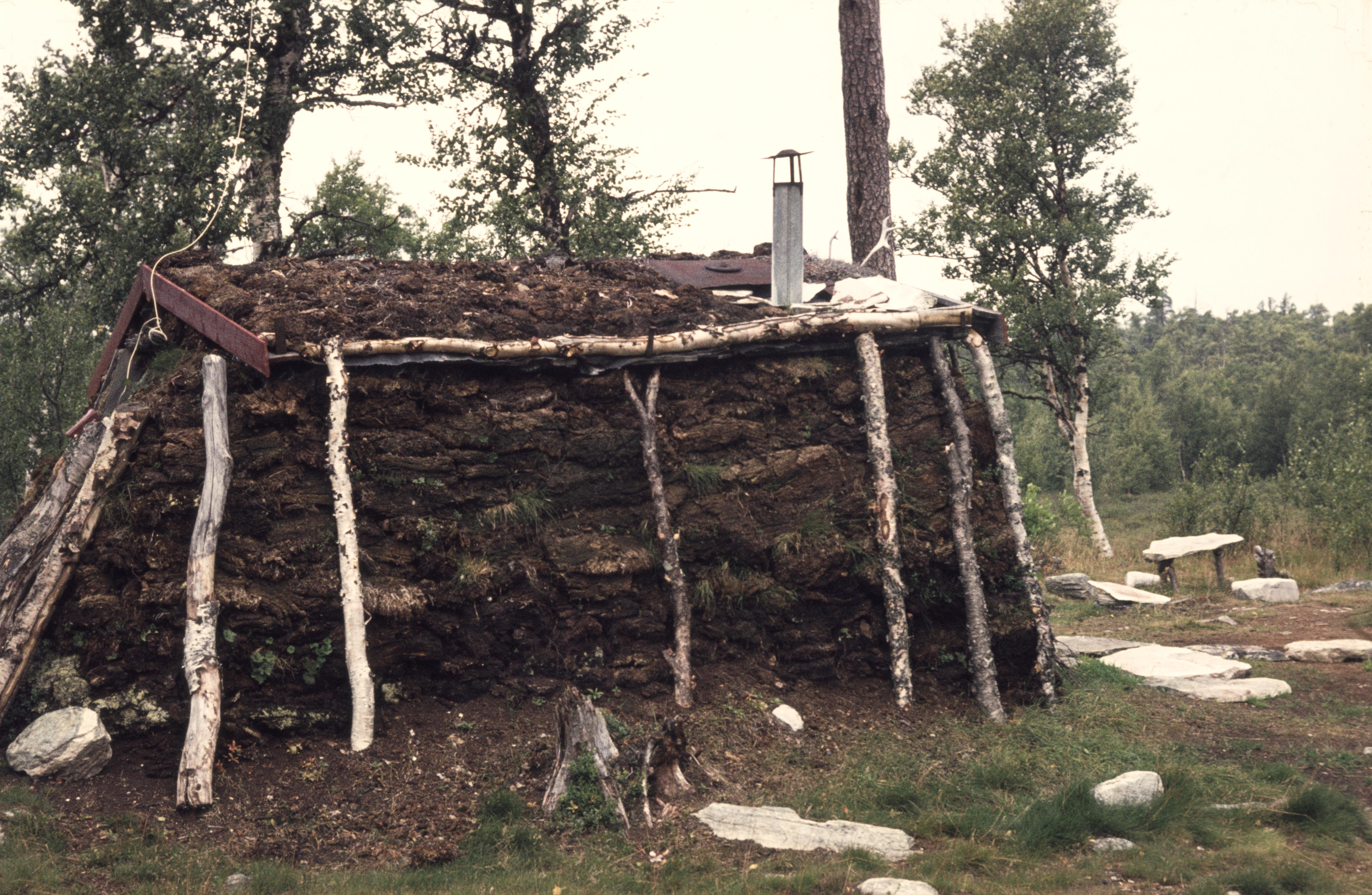 Dette bildet er knyttet til emnene 35 mm, Arkitektur og byggeskikk, Bygninger, Fargefotografi, Fottur, Gamme, Kulturlandskap, Lysbilde, Samisk kultur