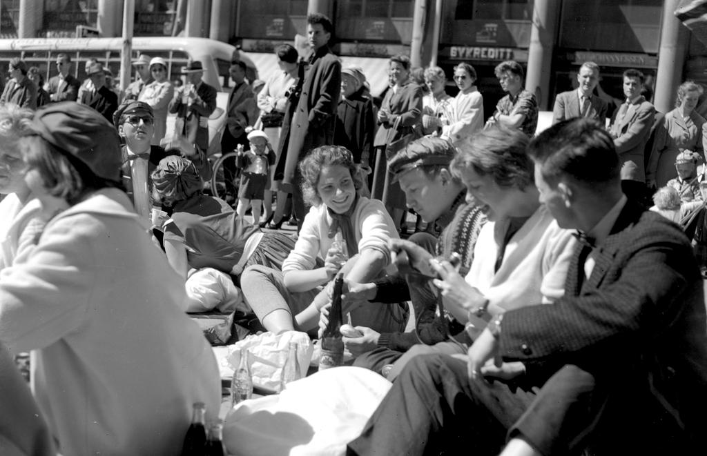 Dette bildet er knyttet til emnene Allmenning, Folkemengde, Piknik, Pressefotografi, Russ, Russeklær, Russelue