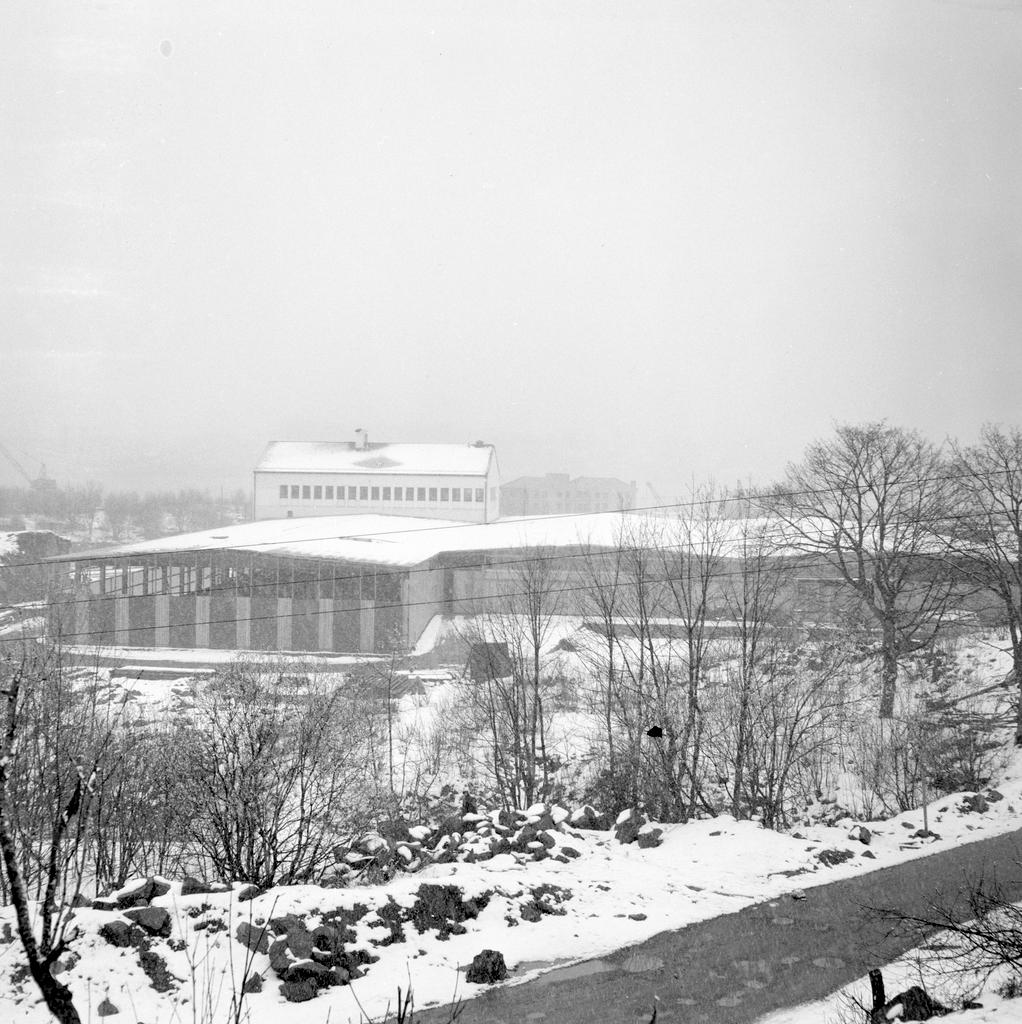 Dette bildet er knyttet til emnene Fabrikkhall, Mellomformat, Pressefotografi, Publiserte bilder, Rørhandel, Snø
