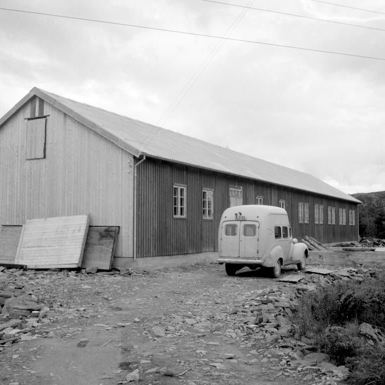 Dette bildet er knyttet til emnene Bil, Bygninger, Mellomformat, Pressefotografi, Publiserte bilder, Skofabrikk
