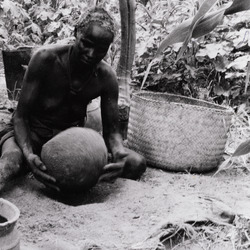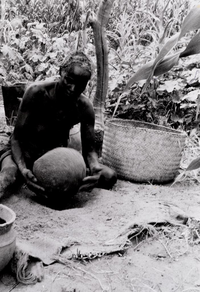 Dette bildet er knyttet til emnene Arkeologi, Feltarbeid, Forskning, Husflid og kunsthåndverk, Keramikk, Krukke, Kurv, Kvinne