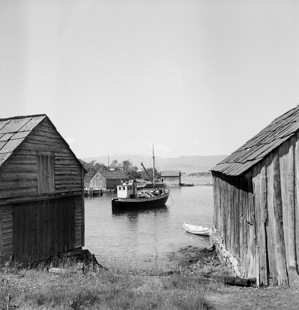 Dette bildet er knyttet til emnene Fiskebåt, Naust, Robåt
