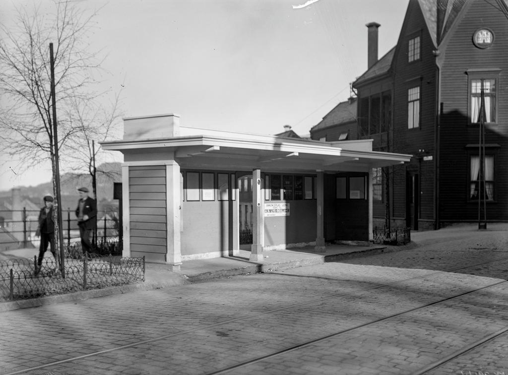 Bergens Sporvei. Venteskur ved siden av Sandviken Brannstasjon 1927