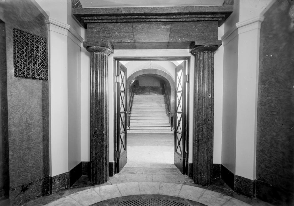Fra inngangshallen i Norges Bank, dørportal og trapp