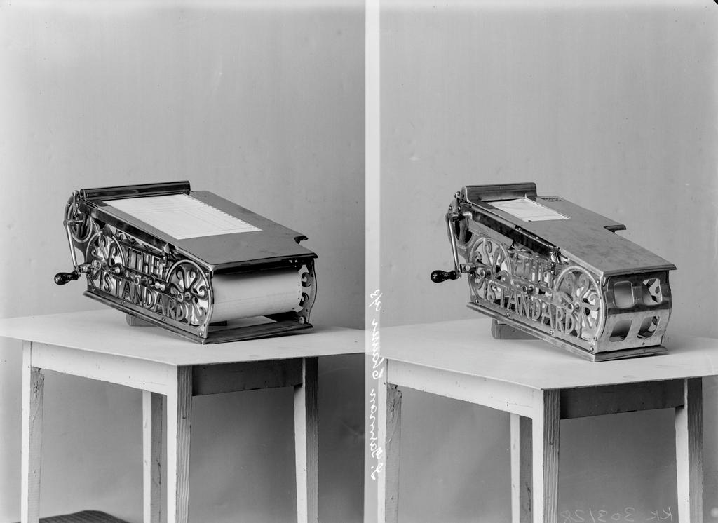 2 bilder på platen. Kontormaskiner for fakturering, av merke "The Standard"