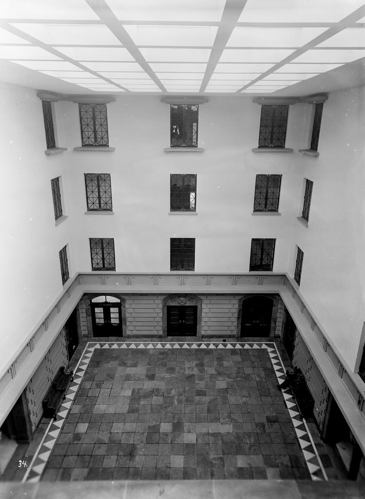 Dette bildet er knyttet til emnene Hall, Interiør, Tinghus