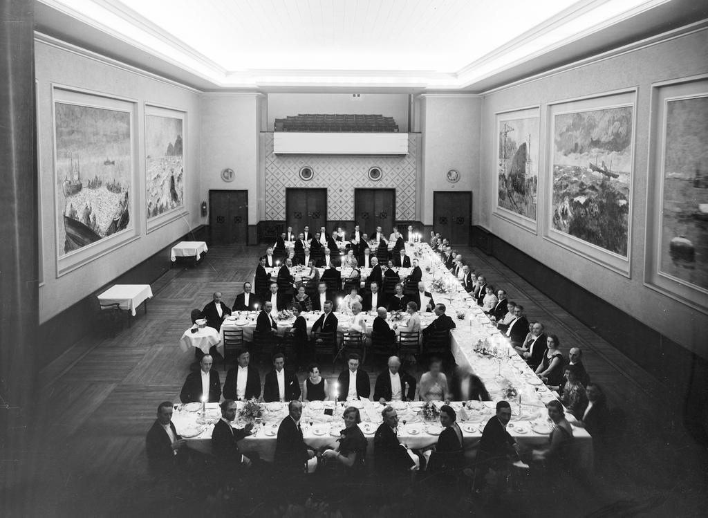 Dette bildet er knyttet til emnene Festmiddag, Interiør, Selskap, Veggmaleri