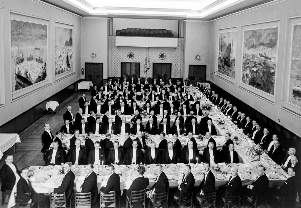 Dette bildet er knyttet til emnene Festmiddag, Interiør, Organisasjoner og lag, Veggmaleri
