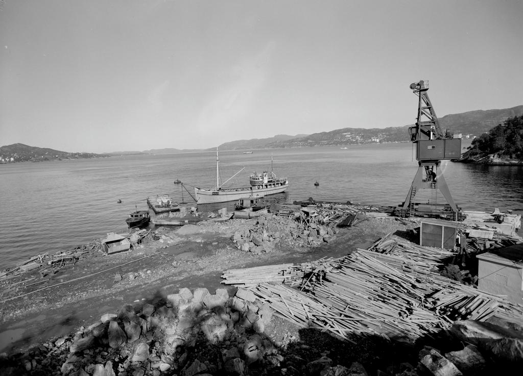 Dette bildet er knyttet til emnene Heisekran, Jern- og metallvarefabrikk, Kaianlegg, Lasteskip, Valseverk