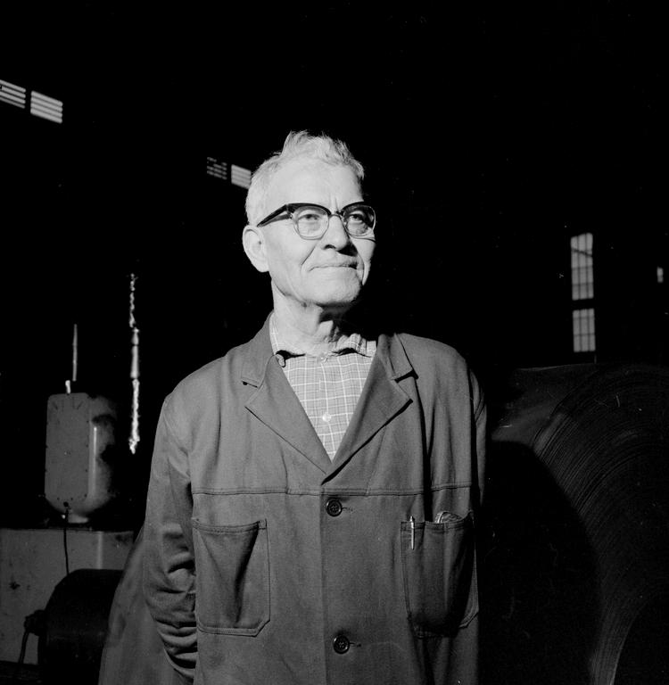 Dette bildet er knyttet til emnene Arbeider, Jern- og metallvarefabrikk, Mannsportrett, Valseverk
