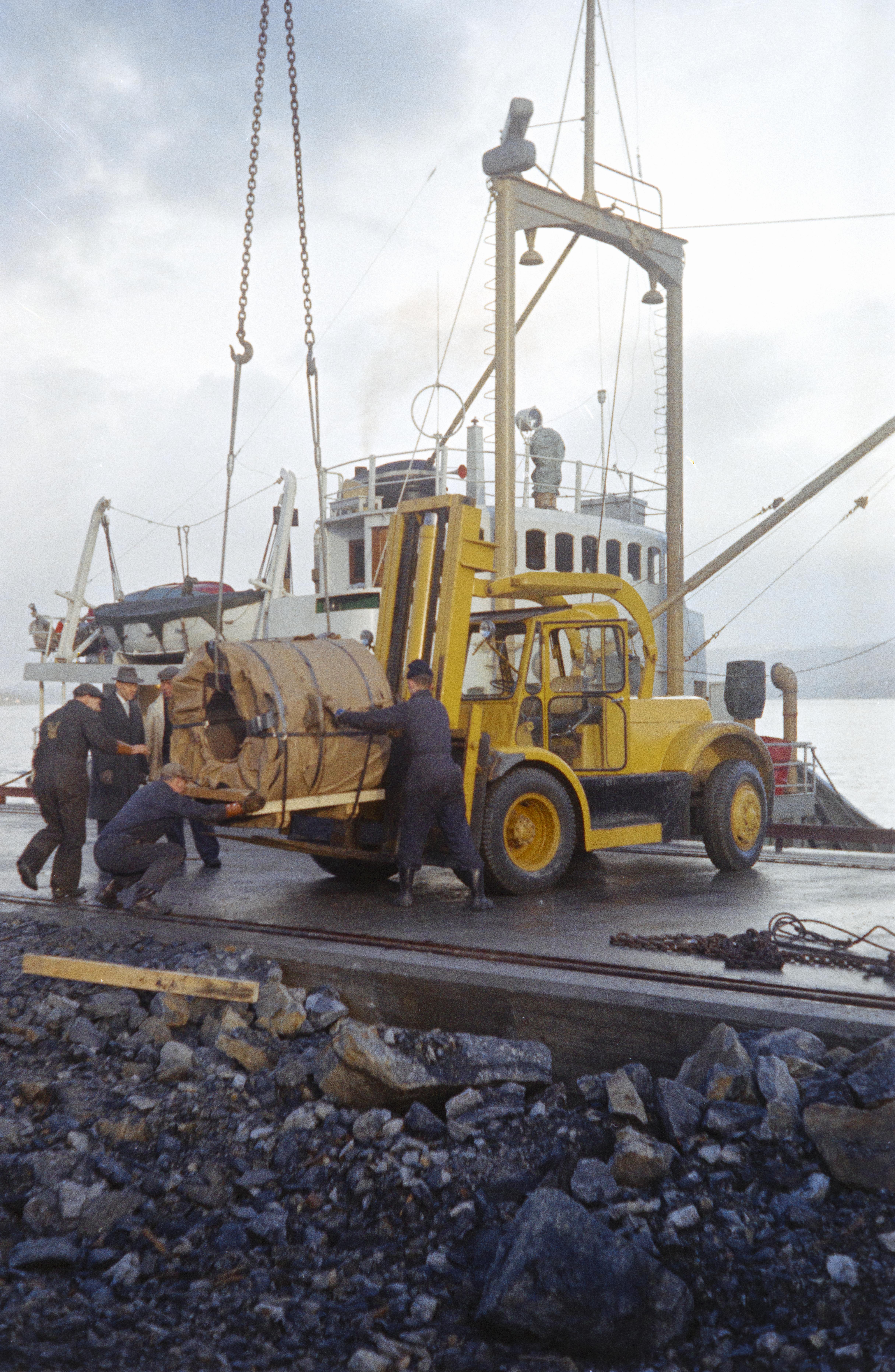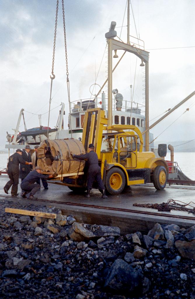 Dette bildet er knyttet til emnene Jern- og metallvarefabrikk, Kaianlegg, Lasteskip, Truck, Valseverk