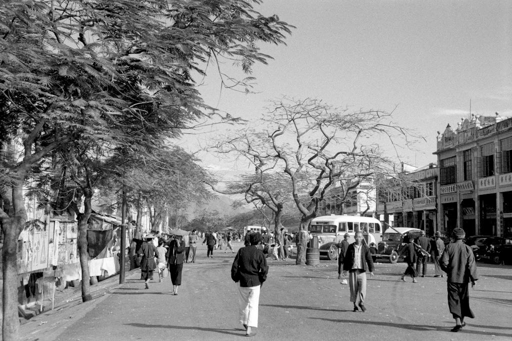 Dette bildet er knyttet til emnene Bil, Buss, By- og småsteder, Folkemengde, Gate