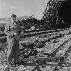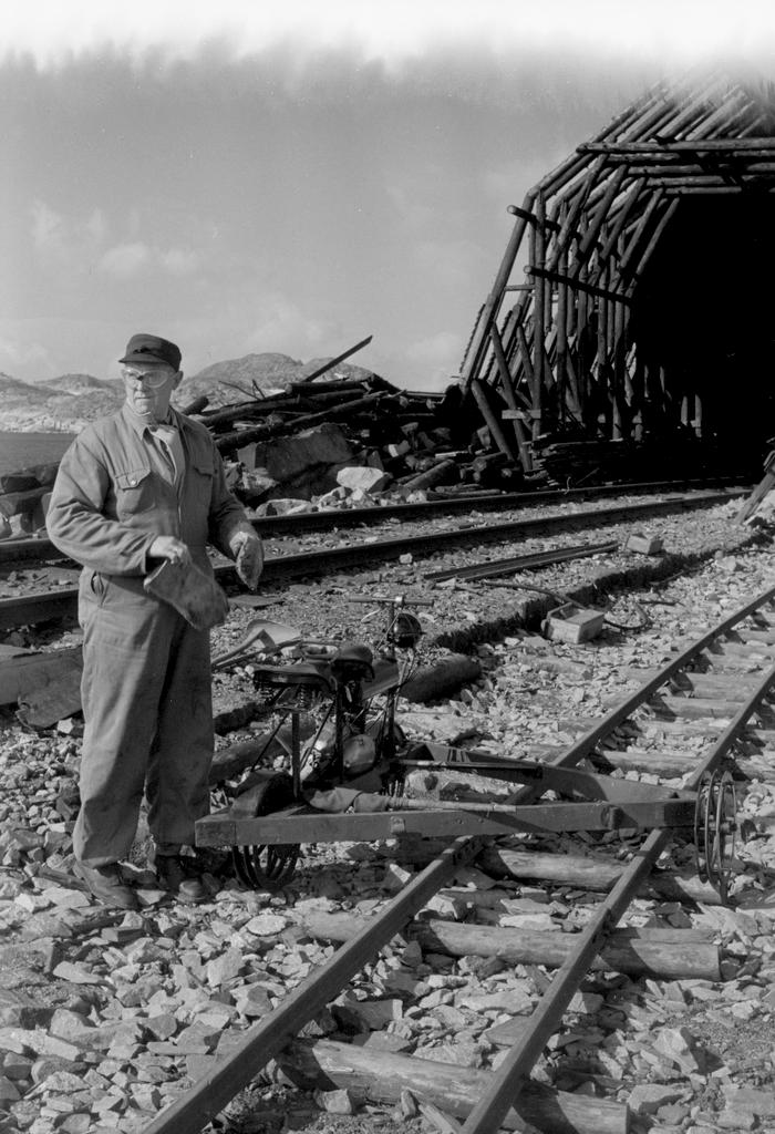 Dette bildet er knyttet til emnene Arbeider, Bergensbanen, Dresin, Jernbaneskinner, Jernbanetunnel, Mann