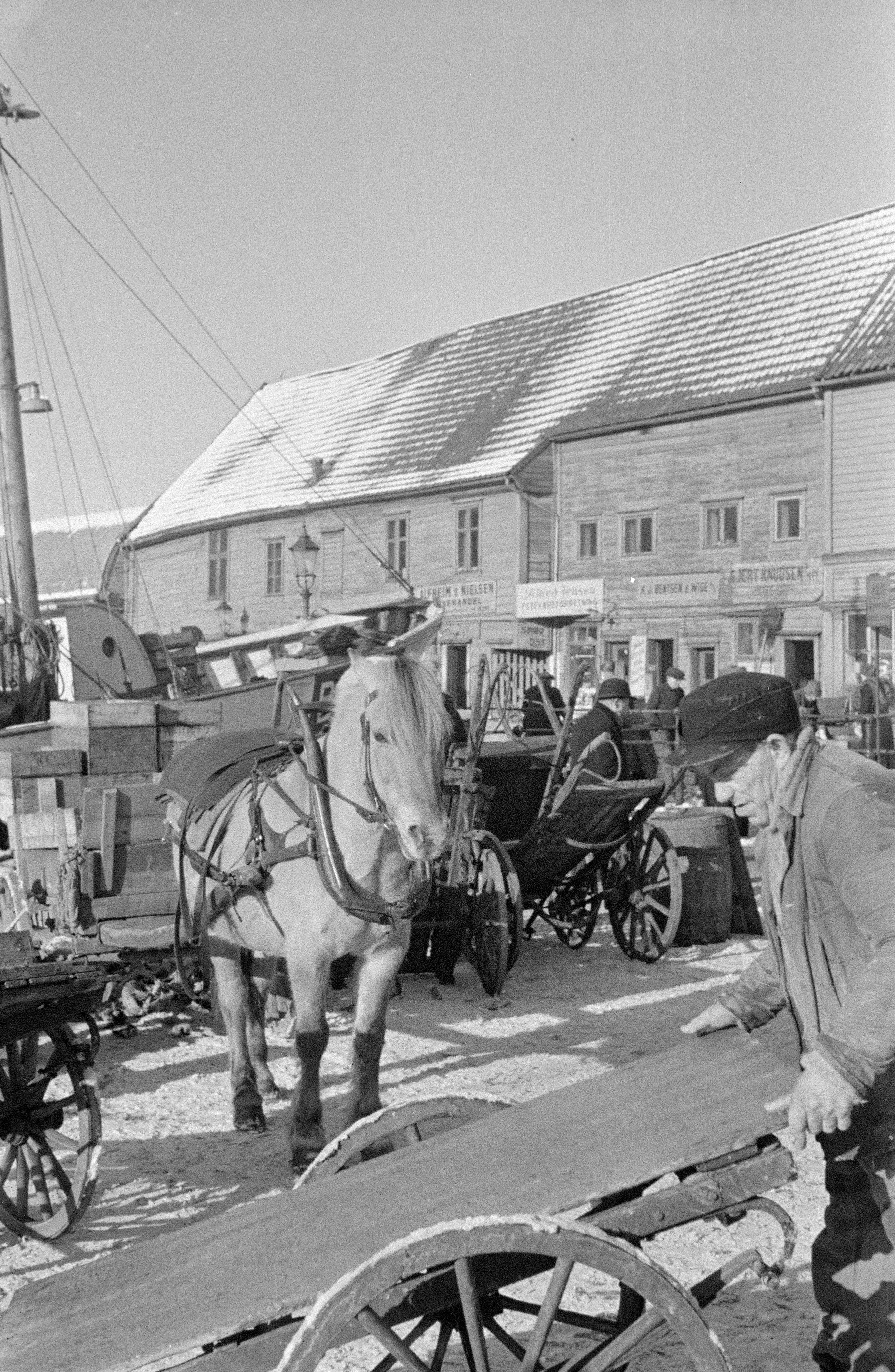 Dette bildet er knyttet til emnene Hest, Håndkjerre, Mannsportrett, Torg