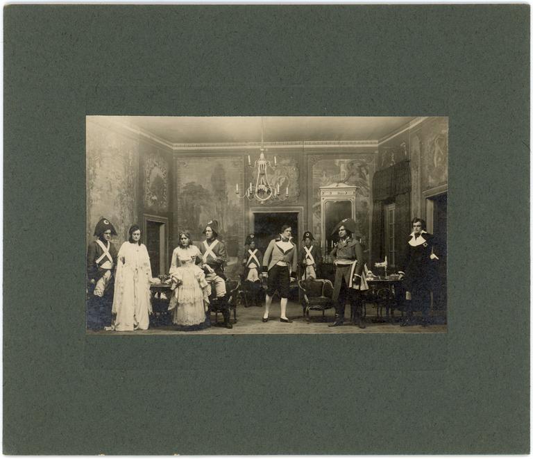 Eldre forestillingsfoto fra produksjonen av "Den røde tid" av Hjalmar Meidell. Produksjonen hadde premiere 9. april 1919.