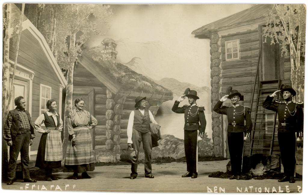 Eldre forestillingsfoto fra produksjonen av "Friarar" av Olav Hoprekstad. Produksjonen hadde premiere 12. august 1927.