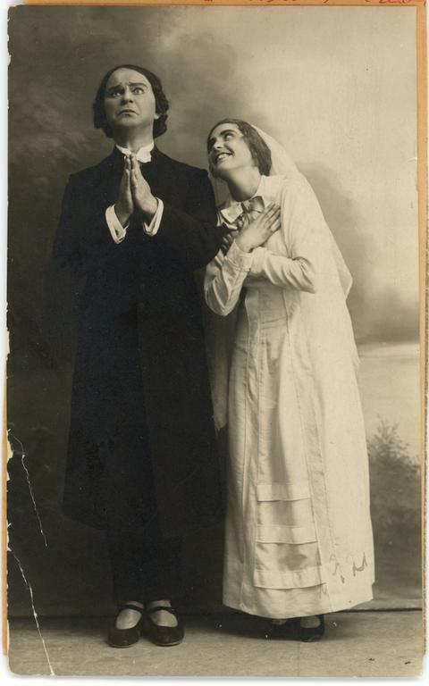 Eldre forestillingsfoto fra produksjonen av "Nitouche" av Albert Milhaud,