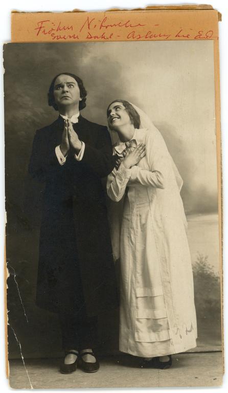 Dette bildet er knyttet til emnene Drama, Forestillingsfoto, Kulisse, Postkort, Scenografi, Skuespiller, Teater, Teater (Scenekunst), Teaterforestilling