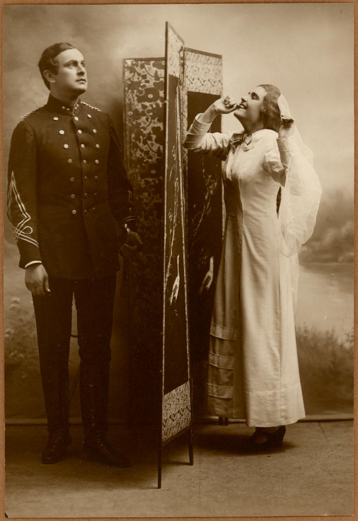 Eldre forestillingsfoto fra produksjonen av "Nitouche" av Albert Milhaud, Henri Meilhac og Florimond Hervé. Produksjonen hadde premiere 16. mai 1920.