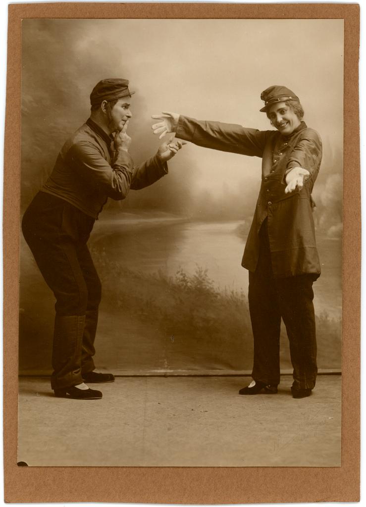 Eldre forestillingsfoto fra produksjonen av "Nitouche" av Albert Milhaud, Henri Meilhac og Florimond Hervé. Produksjonen hadde premiere 16. mai 1920.