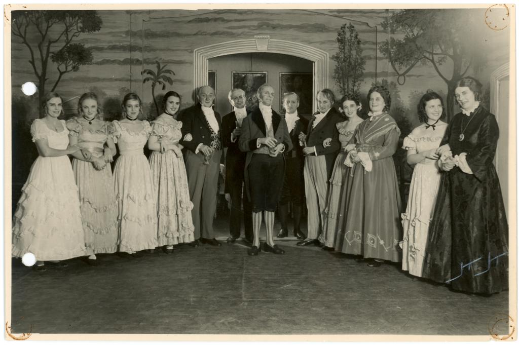 Forestillingsfoto fra Den Nationale Scenes teaterproduksjon av lystspillet "Jan Herwitz" av Hans Wiers-Jenssen. Fra sesongen 1939-40.