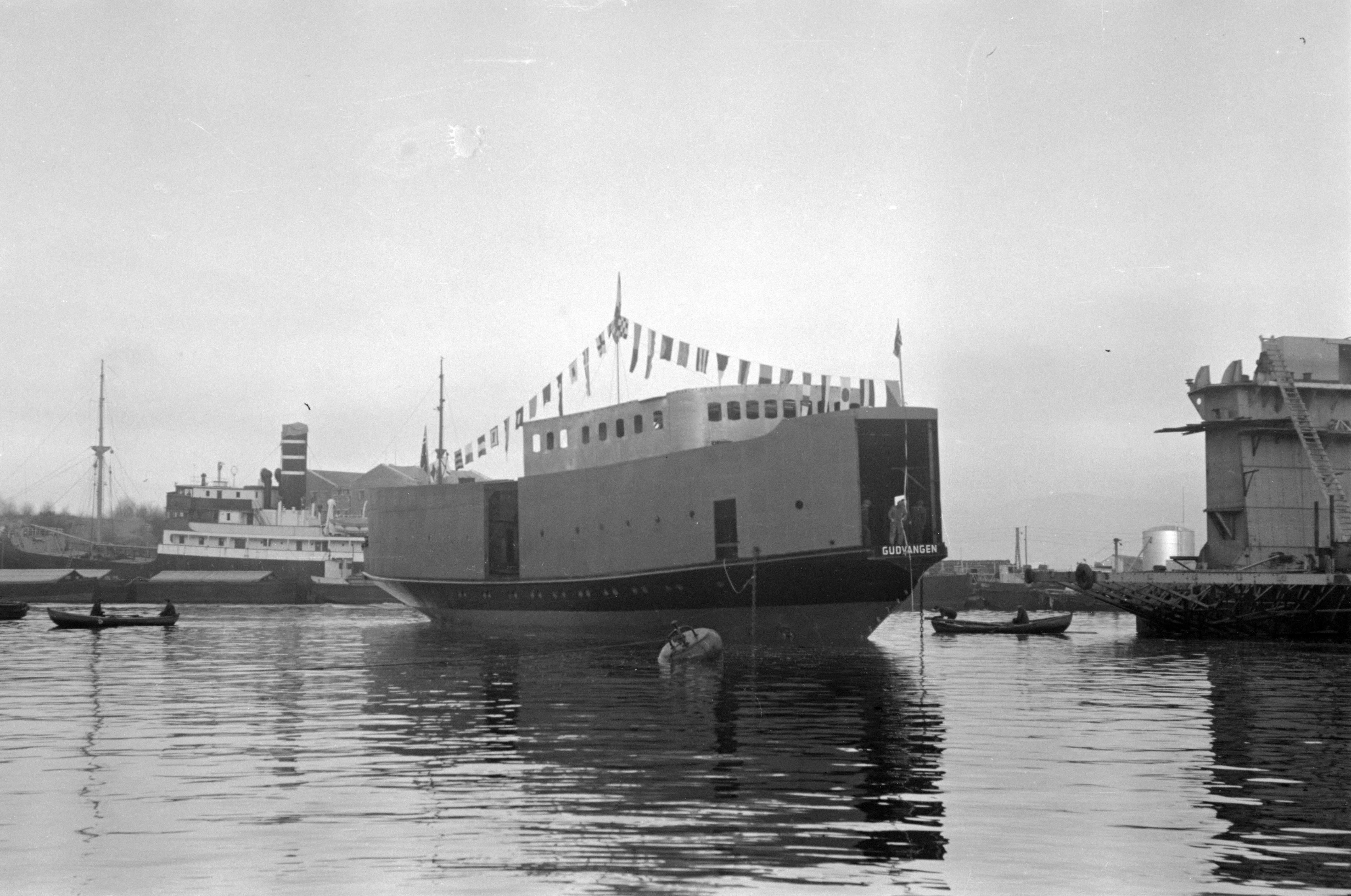 Fylkesbåten MF Gudvangen ble sjøsatt fra Bergen Mekaniske Verksted på Laksevåg fredag 22.01.1954 og overlevert 20.05.1950.