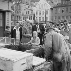 Fiskehandel, Fish marked, Square, Torg, Crowd, Folkemengde, Barrel, Tønne, Torghandel